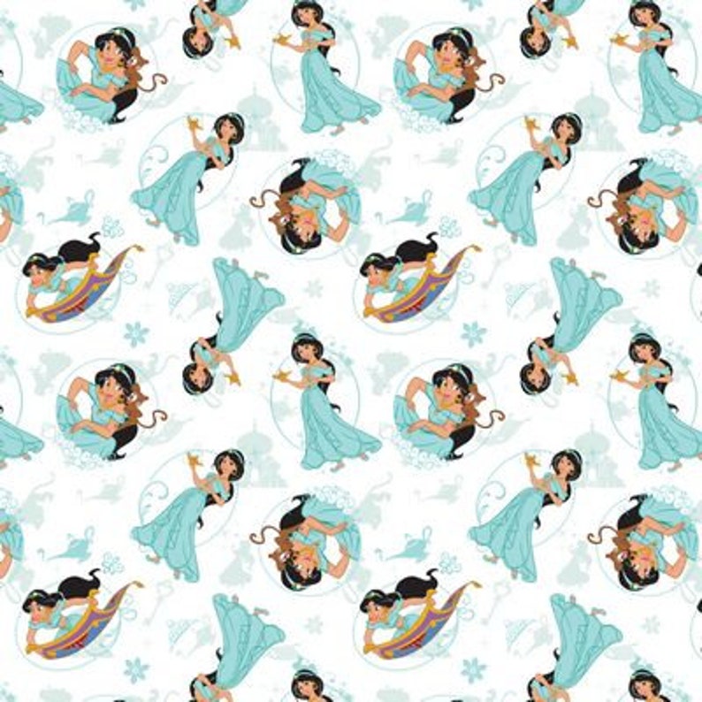 Aladdin Medical Scrub Top Princess Jasmine Flying Carpet Over White Fabric Unisex Style for Men & Women