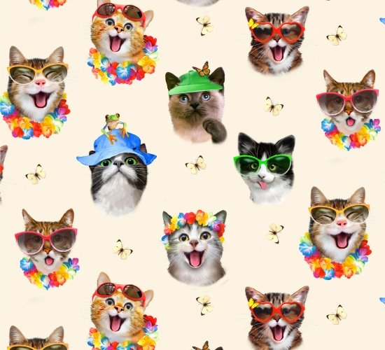 • Load image into Gallery viewer, Funny Cat Selfie Beach Vacation on Tan Fabric Unisex Medical Surgical Scrub Caps Men & Women Tie Back and Bouffant Hat Styles