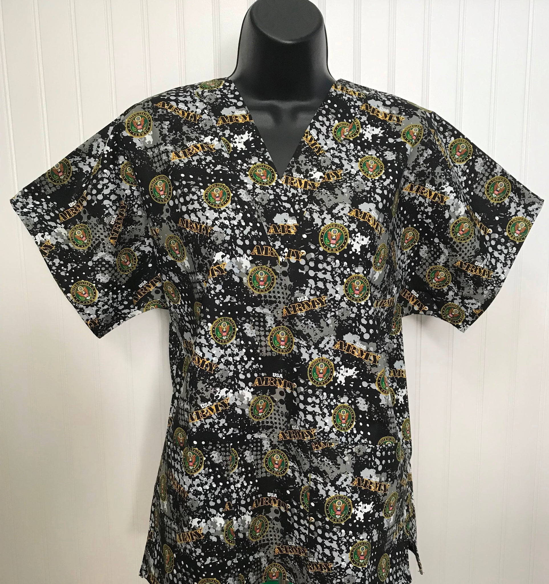 Medical Scrub shirt is handmade from 100% cotton, relaxed fit, not fitted, V-neck, short sleeved with choice of 2 roomy double stitched front pockets OR 1 Chest Pocket with hip side slits for extra hip ease or the No Slits Option. All seams have zigzag edges to prevent fraying. I suggest machine wash cold, hang dry, light ironing maybe required. Will shrink if washed in hot water and placed in dryer.