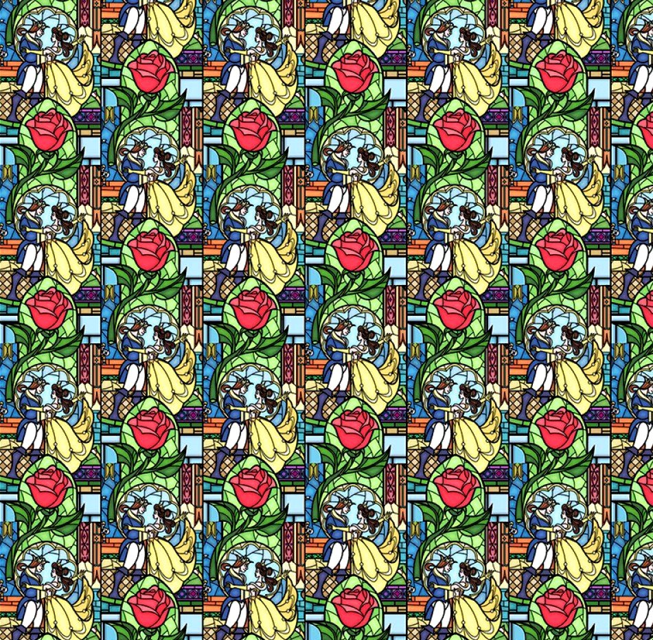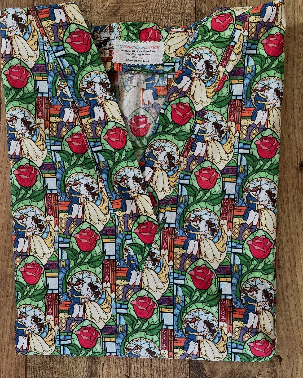 Beauty and the Beast Beautiful Stained Glass Window Tiles Fabric Nurse Medical Scrub Top Unisex Style for Men & Women
