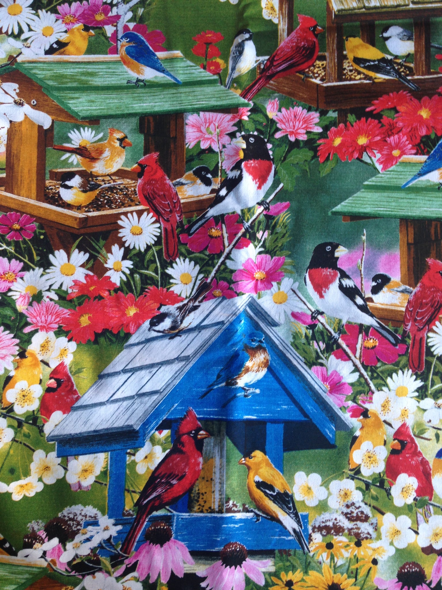 • Load image into Gallery viewer, Birds in Nature Spring Again Garden with Birdhouses Fabric Unisex Medical Surgical Scrub Caps Men & Women Tie Back and Bouffant Hat Styles