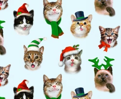 Christmas Holidays Cute Santa Kitty Cat Faces Selfies Blue Fabric Stethoscope cover for Medical Professionals