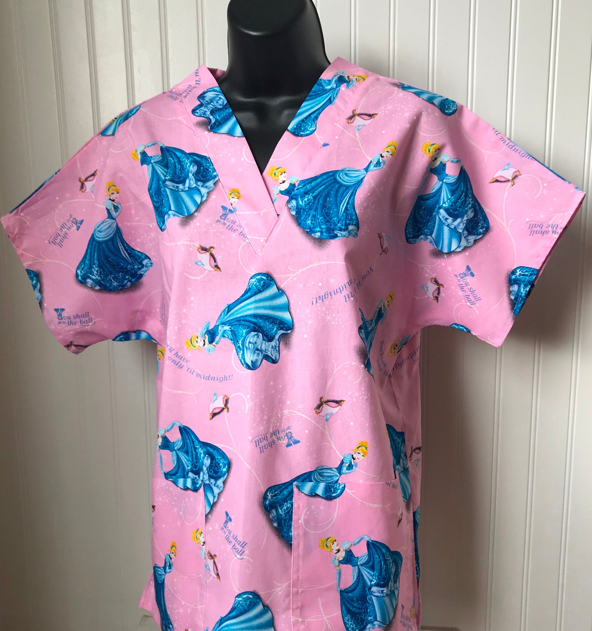 Cinderella at the Ball Pink Fabric Nurse Medical Scrub Top Unisex Style for Men & Women