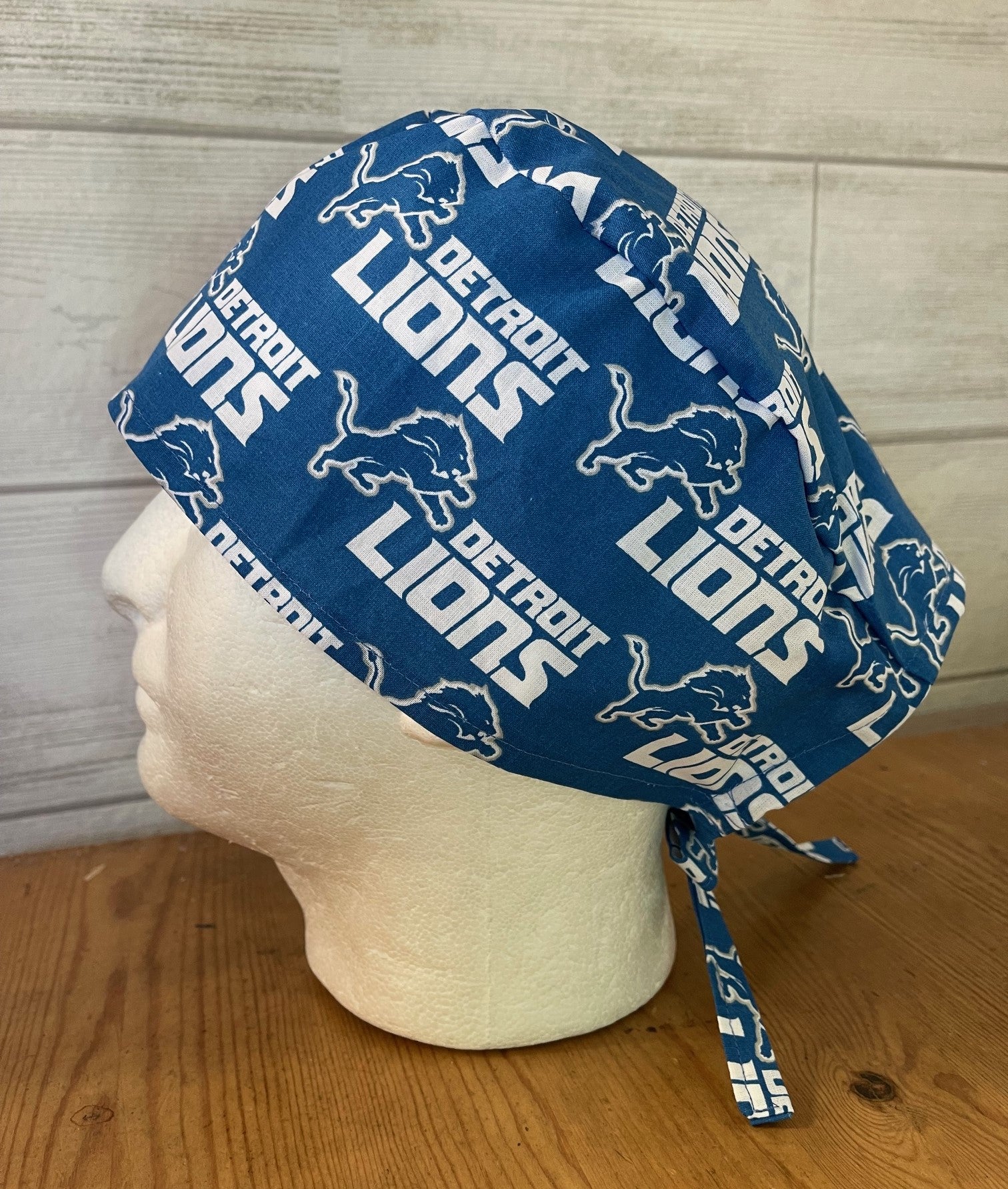 DETROIT LIONS FOOTBALL Unisex Medical Surgical Scrub Caps Men & Women Tie Back and Bouffant Hat Styles