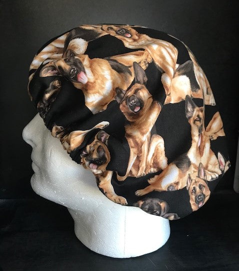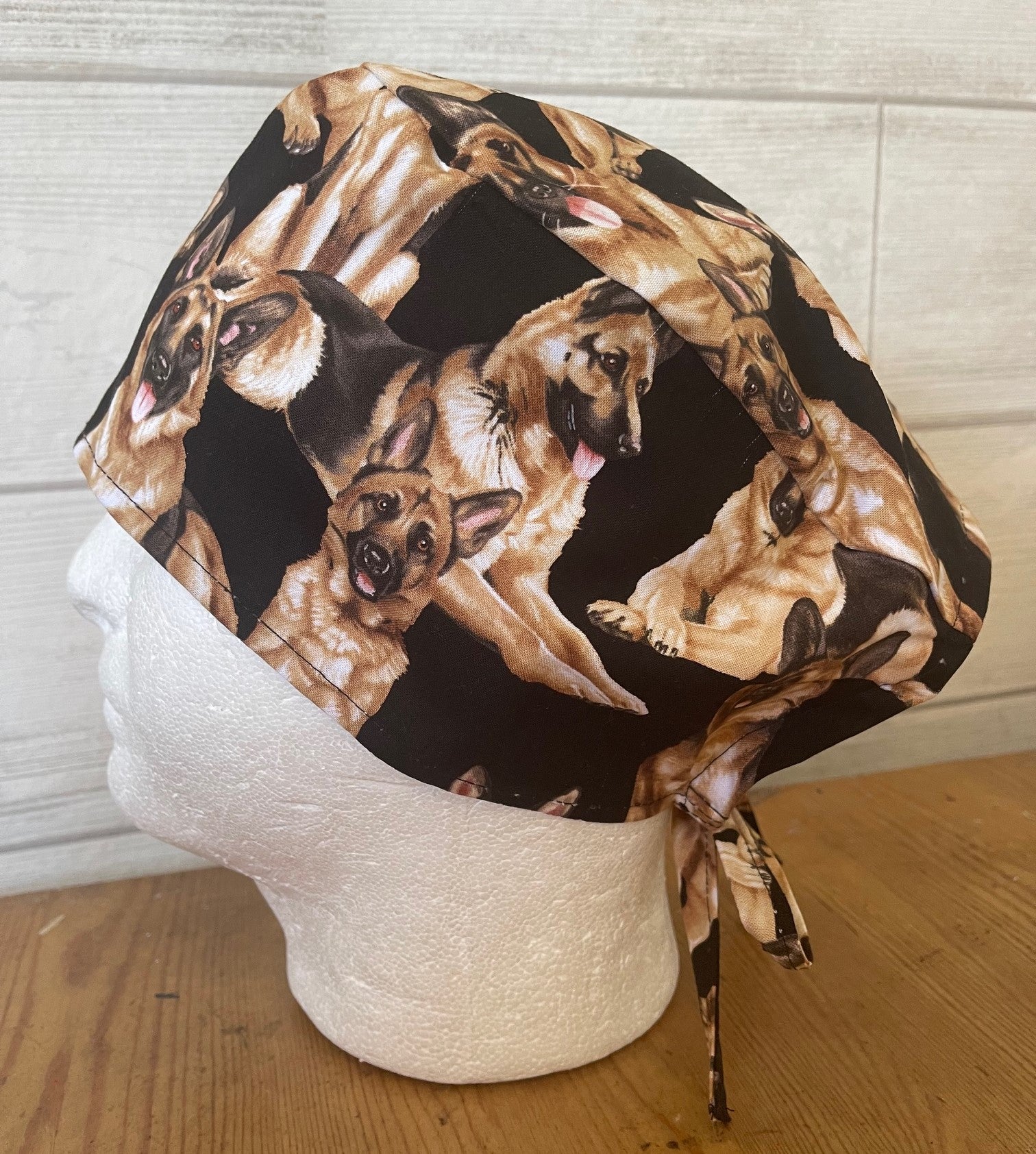German Shepherd Puppy Dogs Fabric Unisex Medical Surgical Scrub Caps Men & Women Tie Back and Bouffant Hat Styles