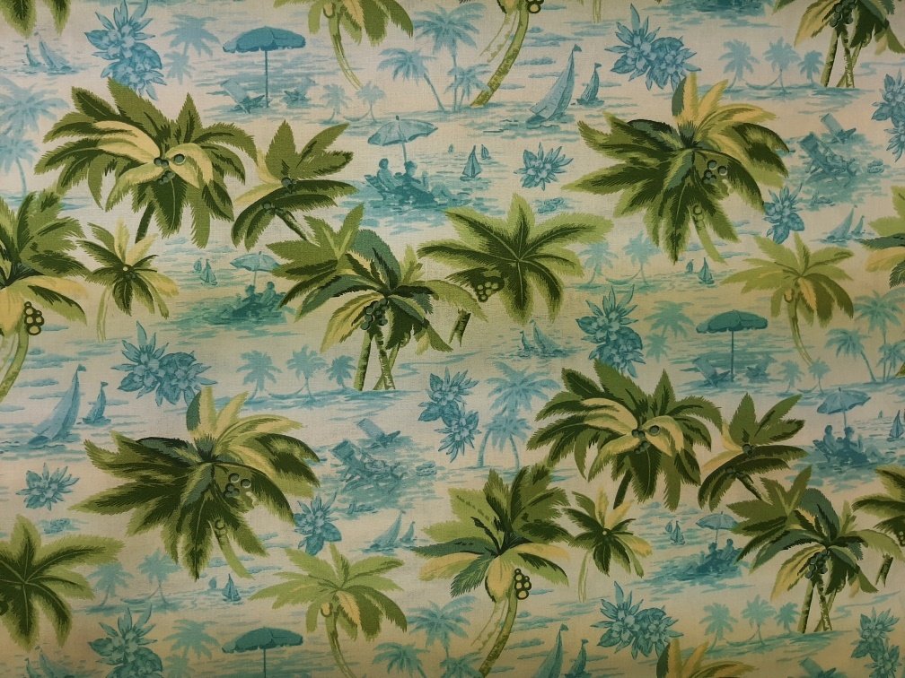Hawaiian Tropical Palm Trees Sunbathers Umbrella Fabric Unisex Medical Surgical Scrub Caps Men & Women Tie Back and Bouffant Hat Styles