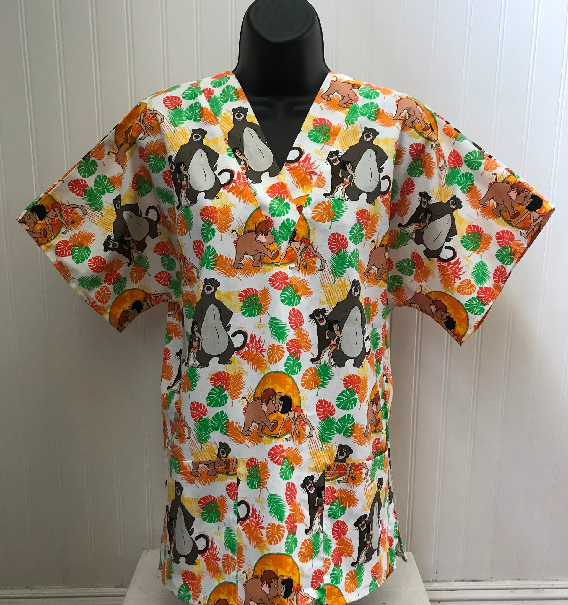 Jungle Book Characters Mowgli Baloo Hatri Jr Bagheera Fabric Nurse Medical Scrub Top Unisex Style for Men & Women