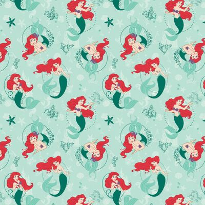 Little Mermaid Ariel Flounder Sebastian Green Fabric Nurse Medical Scrub Top Unisex Style for Men & Women