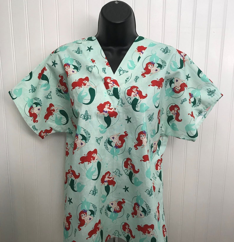 Little Mermaid Medical Scrub Top Ariel Flounder Sebastian Unisex Style for Men & Women