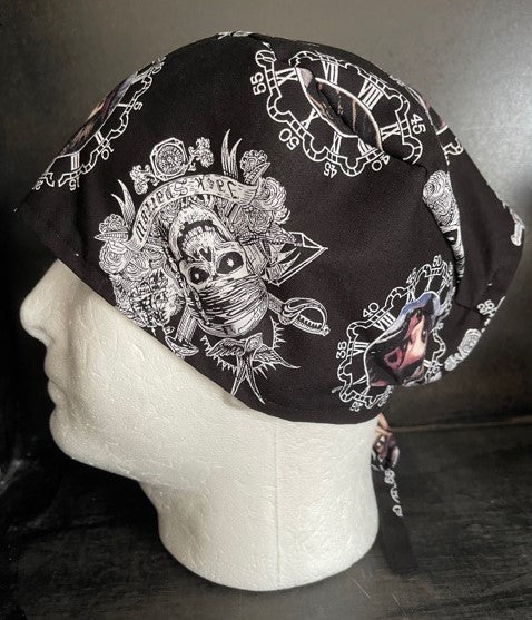 Pirates of the Caribbean CAPTAIN JACK SPARROW Fabric Unisex Medical Surgical Scrub Caps Men & Women Tie Back and Bouffant Hat Styles