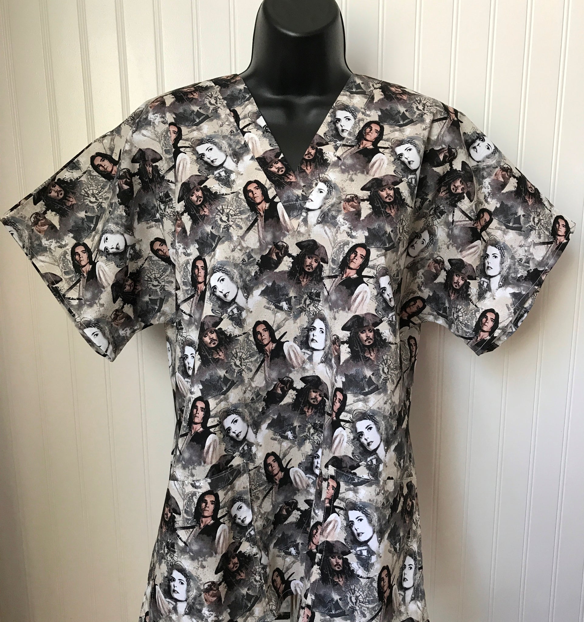Pirates of the Caribbean Medical Scrub Top SEA RULES ALL Unisex Style for Men & Women