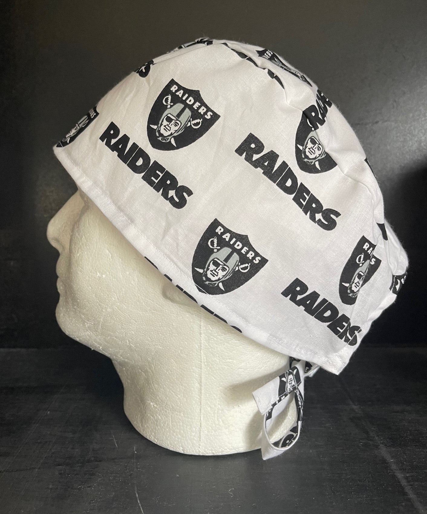 RAIDERS WHITE FOOTBALL Unisex Medical Surgical Scrub Caps Men & Women Tie Back and Bouffant Hat Styles