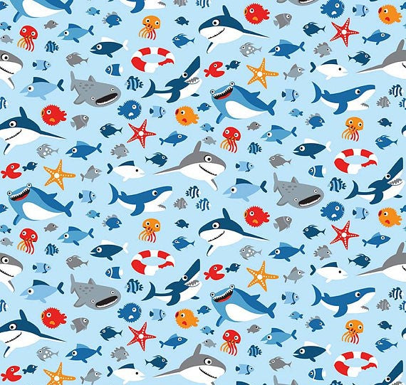 Cute Sharks, Whales & Friends Fabric Unisex Medical Surgical Scrub Caps Men & Women Tie Back and Bouffant Hat Styles