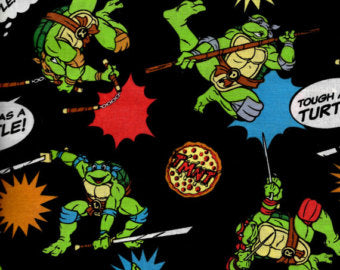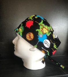 TMNT Teenage Mutant Ninja Turtles Black Fabric Unisex Medical Surgical Scrub Caps Men & Women Tie Back and Bouffant Hat Styles